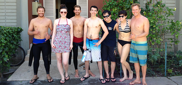 Fluent in Spanish, French, and Portuguese, Nick frequently gives surf lessons in these languages.